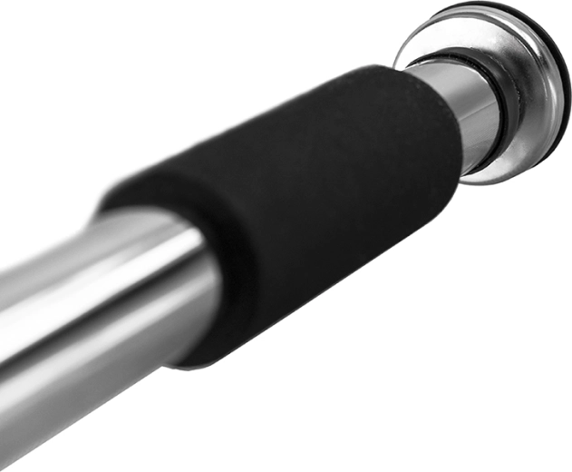 L’installation est rapide et sûre : les embouts robustes à filetage fixent fermement la barre dans le cadre de la porte sans perçage. Les exercices à la barre sollicitent plusieurs groupes musculaires à la fois et sont idéaux pour les tractions, les relevés de jambes en suspension ou les maintiens isométriques.