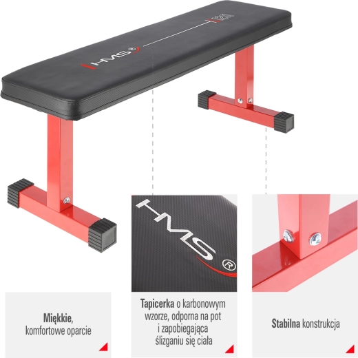 Le banc de musculation plat HMS L1211 est un excellent choix pour un entraînement de force efficace à la maison. Le cadre en acier stable, les embouts antidérapants et le dossier agréablement matelassé garantissent la sécurité lors du développé couché, des exercices avec haltères et du travail du tronc.