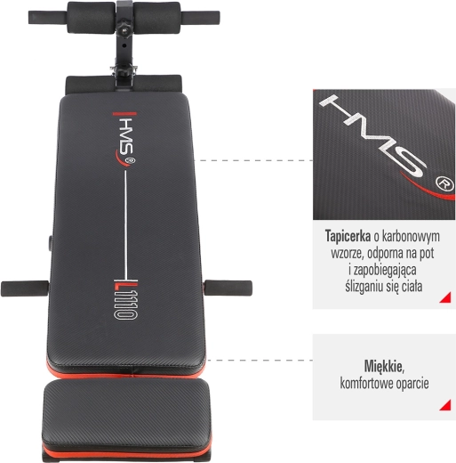 Le banc incliné réglable HMS L1110 est un partenaire fiable pour votre salle de sport à domicile. Sa structure en acier stable et sa fabrication de qualité assurent un entraînement en toute sécurité, tandis que le rembourrage doux du dossier et les rouleaux en mousse offrent un confort maximal. Le revêtement à motif carbone est résistant à la transpiration et aide à prévenir le glissement pendant l’exercice.