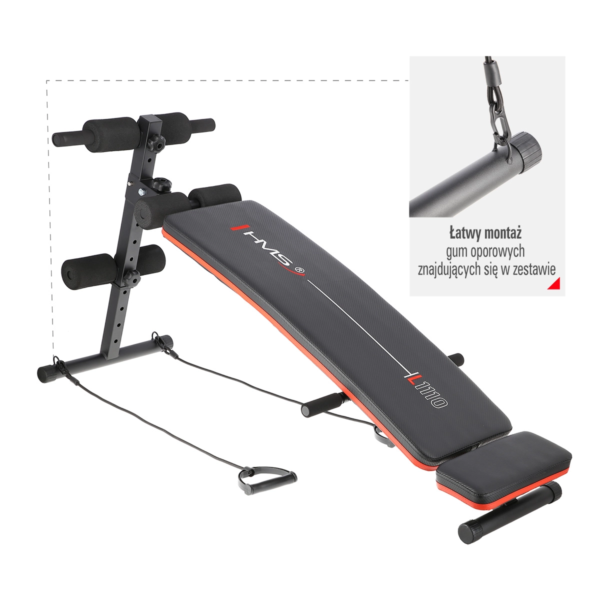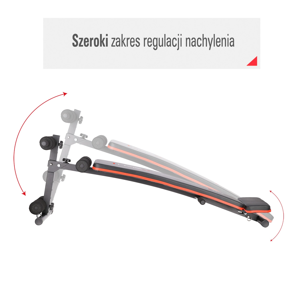 Grâce à l’inclinaison réglable sur 5 niveaux, vous adaptez facilement la difficulté des exercices – des débutants aux utilisateurs avancés. Les poignées latérales et les prises près des rouleaux supérieurs élargissent les possibilités d’entraînement aux pompes, tandis que les 2 bandes élastiques fournies permettent d’activer efficacement les muscles des épaules, du dos et des bras.