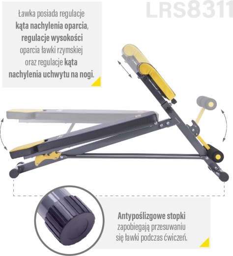 Le HMS Premium LSR8311 est un banc multifonction bien pensé pour un entraînement efficace à la maison. Le dossier se règle sur 3 positions – de l’horizontale pour les exercices avec haltères jusqu’à l’inclinaison négative pour un renforcement intensif des abdominaux. Le prêcheur (appui cuisse/biceps) réglable en hauteur sur 7 crans permet un ajustement précis pour l’isolation des biceps et assure une bonne posture lors de l’hyperextension pour renforcer le bas du dos.