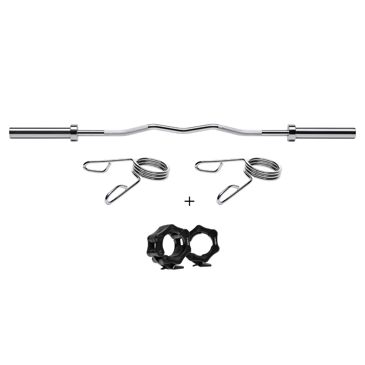 Barre olympique coudée HMS Premium 150 cm avec colliers rapides ZG1000