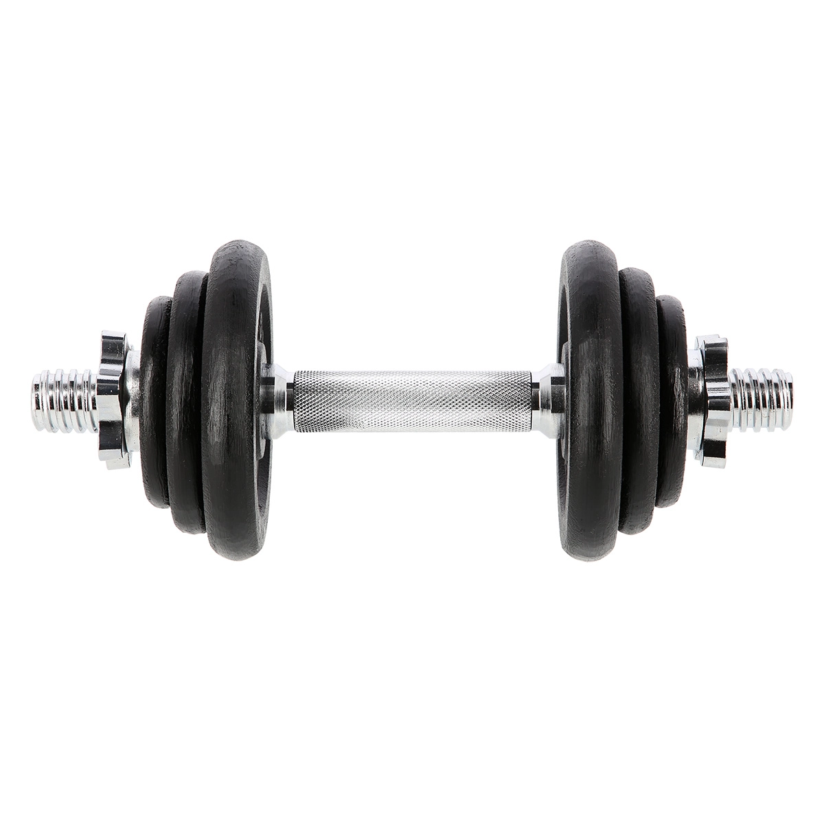 L’haltère est idéal pour les curls biceps, les développés, les triceps et les épaules. La barre filetée de 35 cm de long et de 30 mm de diamètre permet de modifier aisément les combinaisons de poids et de régler la résistance selon vos objectifs. Les écrous étoile (spin-lock) avec bande en caoutchouc maintiennent les disques bien en place et empêchent leur desserrage pendant l’entraînement.