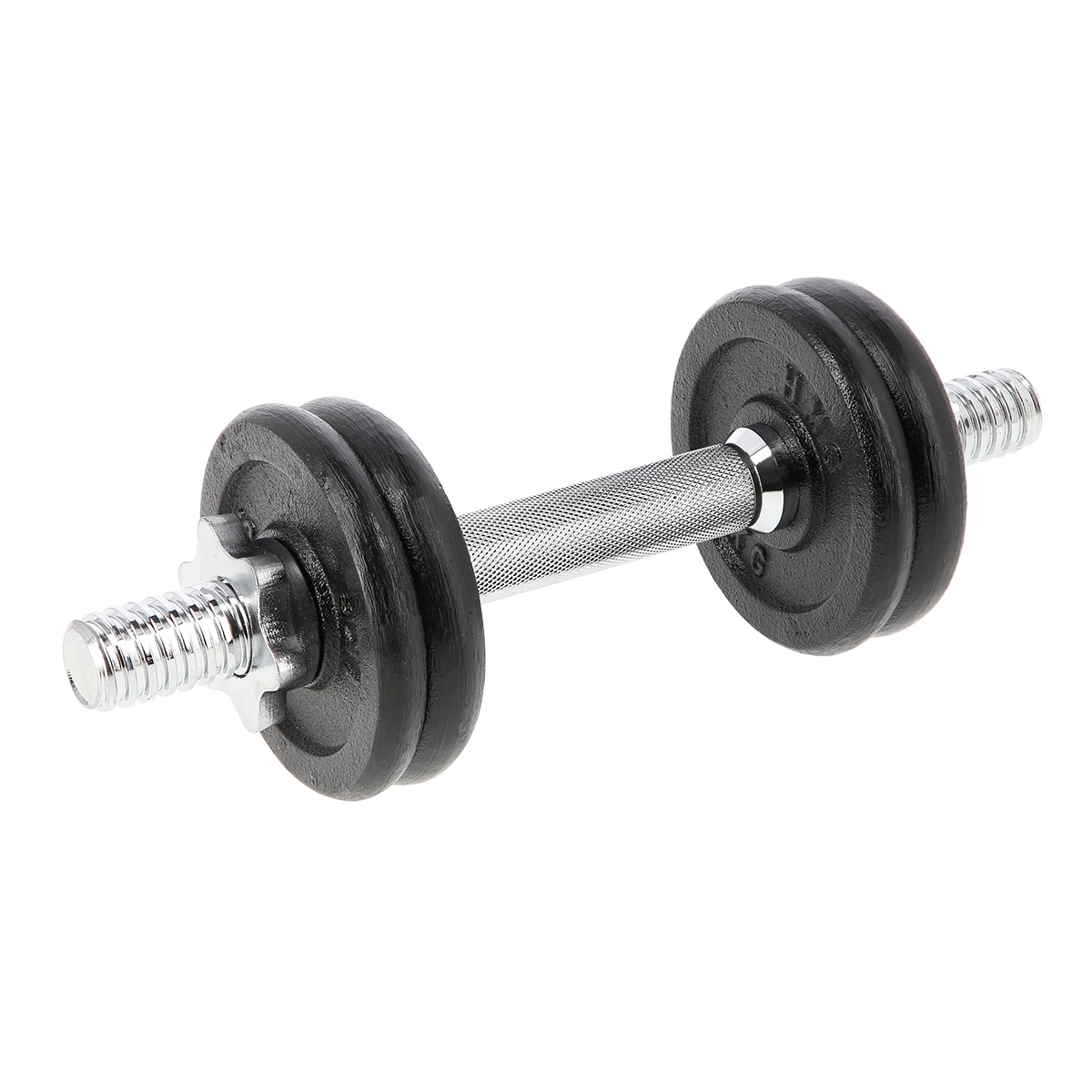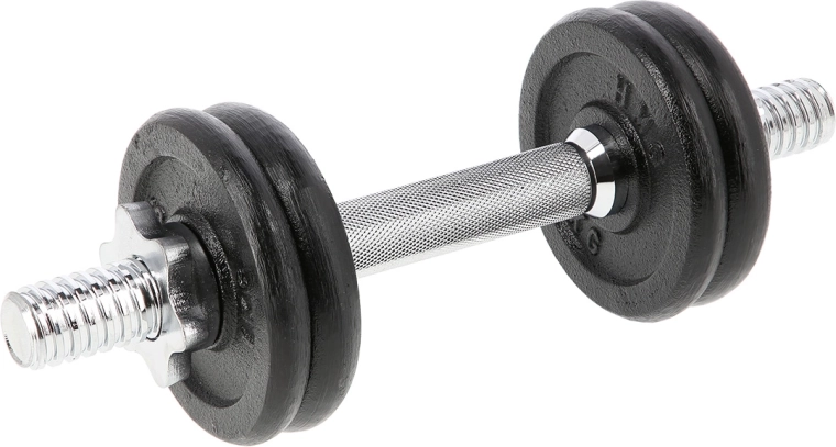 Le kit comprend des disques en fonte de 1 kg et 1,25 kg. Vous ajustez facilement le poids de l’haltère jusqu’à 7 kg selon votre objectif d’entraînement.