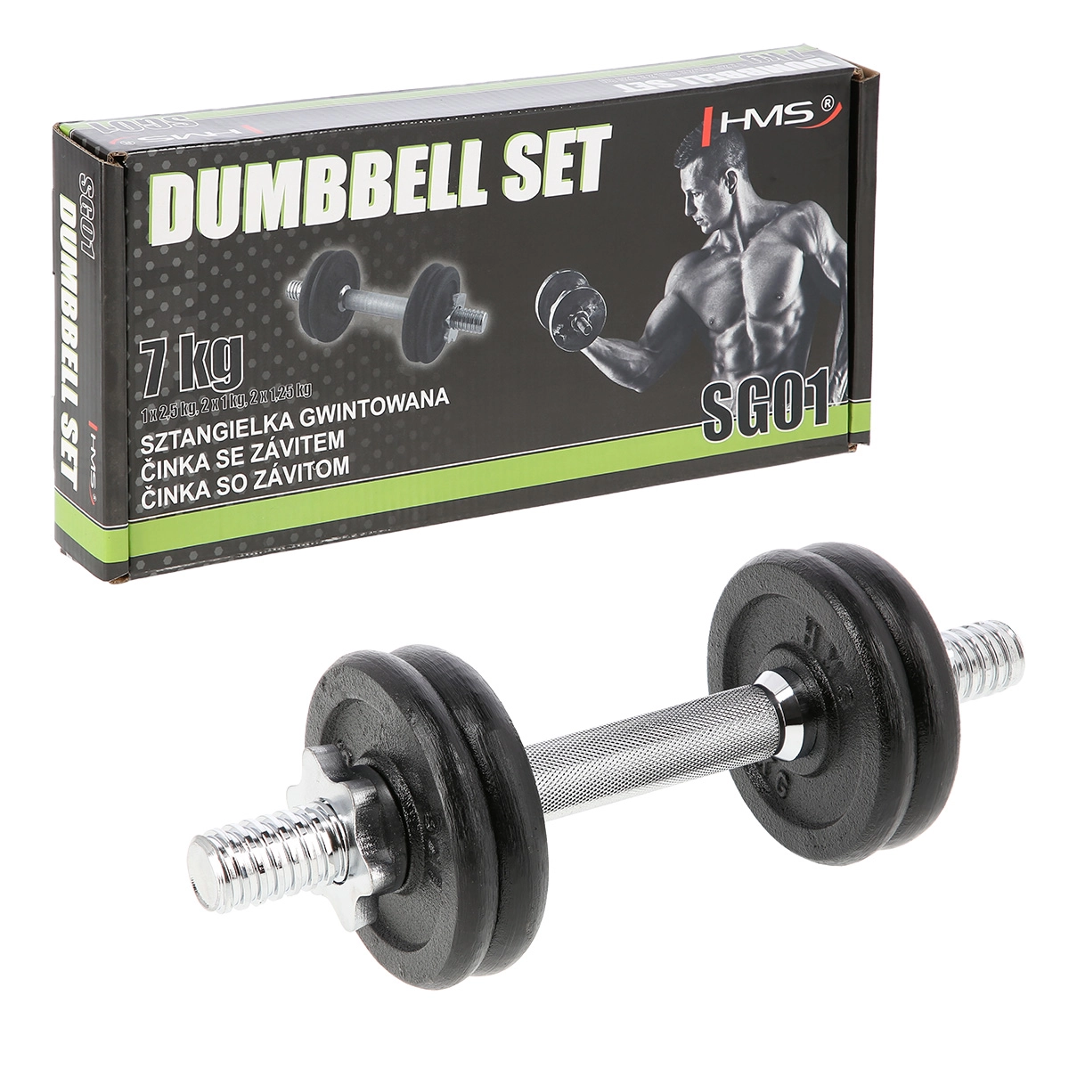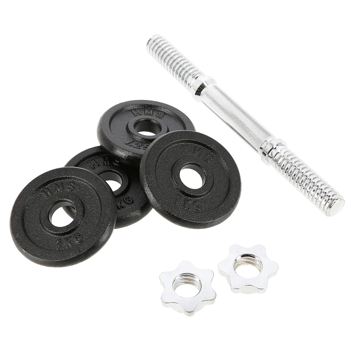 Le coffret comprend des disques en fonte de 1 kg et 1,25 kg, grâce auxquels vous pouvez régler facilement le poids total de l’haltère jusqu’à 7 kg. L’ensemble est compact, durable et adapté à un usage domestique comme au complément d’un équipement existant.