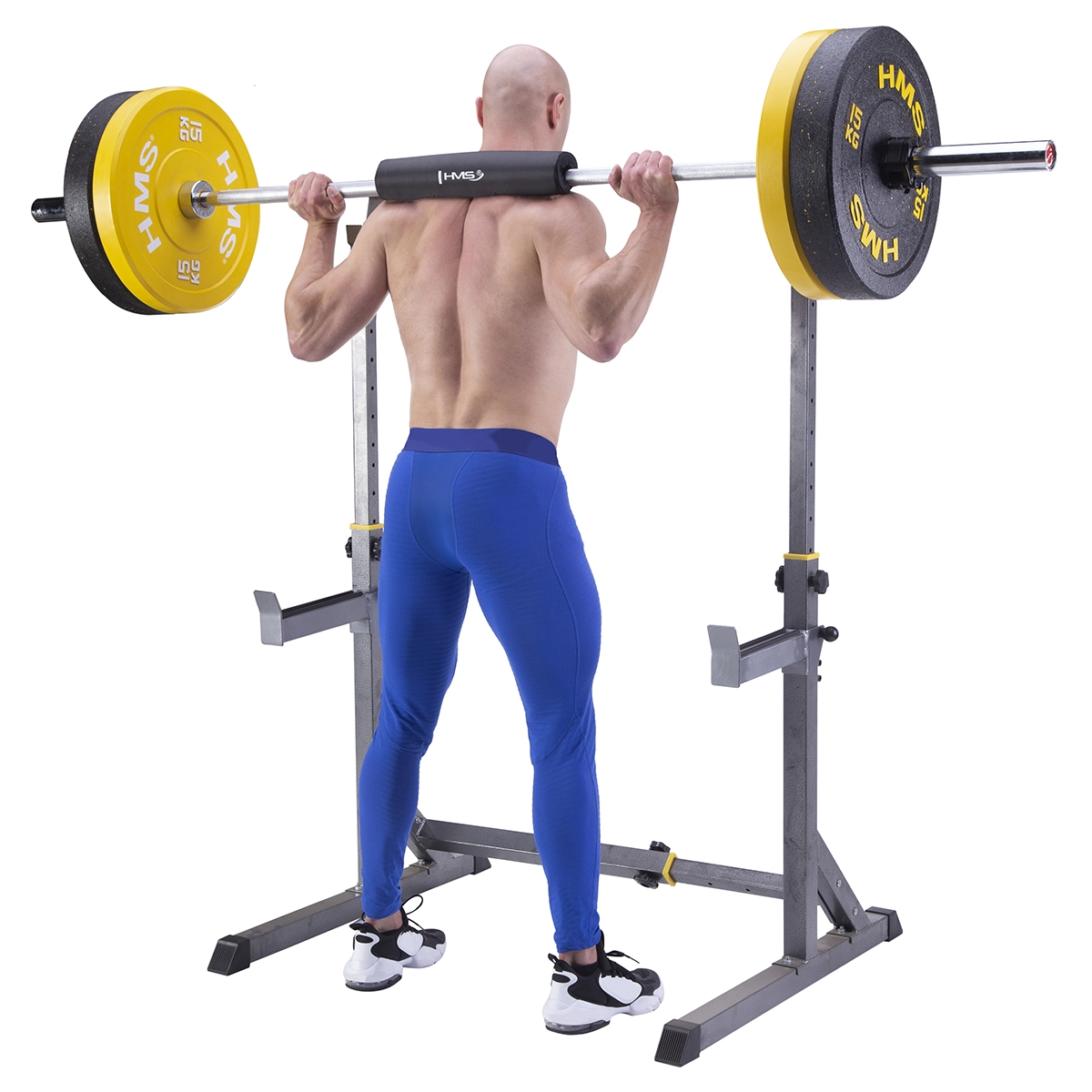 Une mousse dense de 3 cm d’épaisseur répartit efficacement la pression de la barre et protège les trapèzes et la nuque lors des squats et des développés.