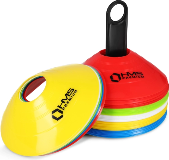 Le set de plots HMS PREMIUM est idéal pour le football, l’athlétisme, le fitness et l’éducation physique. Grâce au PVC souple et robuste, les plots sont résistants aux écrasements et conservent leur forme même en cas d’utilisation intensive. Les couleurs vives améliorent la visibilité et aident à délimiter clairement les zones, les couloirs ou les ateliers d’entraînement.