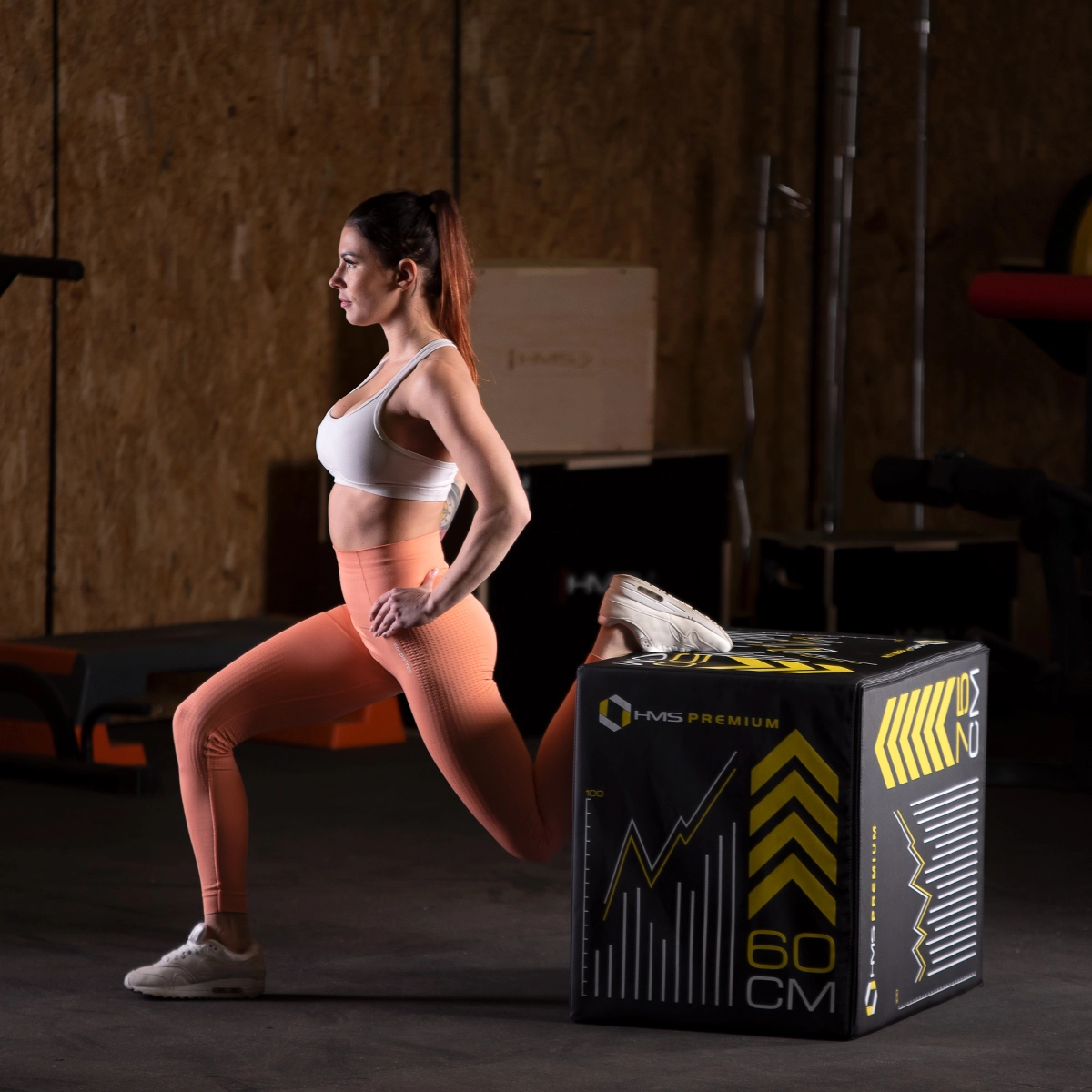 Le plyo box HMS Premium combine un noyau en EPE souple avec une housse en PVC résistante pour une confiance maximale lors d’entraînements plyométriques exigeants. La densité de la mousse est conçue pour supporter des sauts intensifs tout en minimisant le risque d’éraflures et de blessures lors d’une réception manquée. Un seul box offre trois hauteurs – 75, 60 et 50 cm – couvrant ainsi l’échauffement, le travail de force et les exercices explosifs.