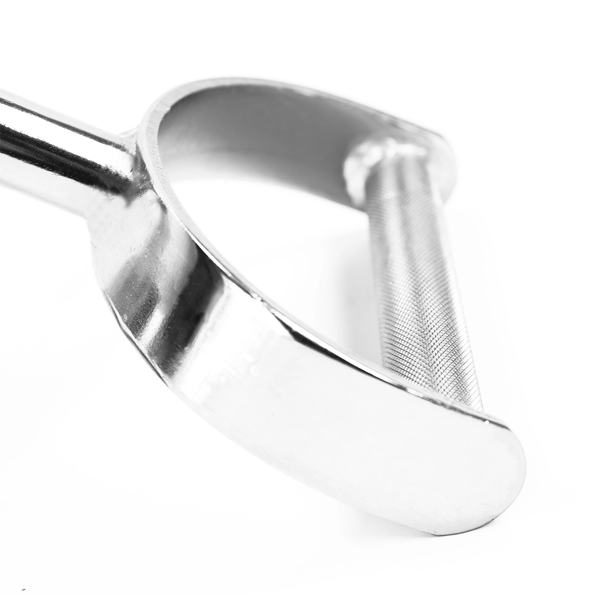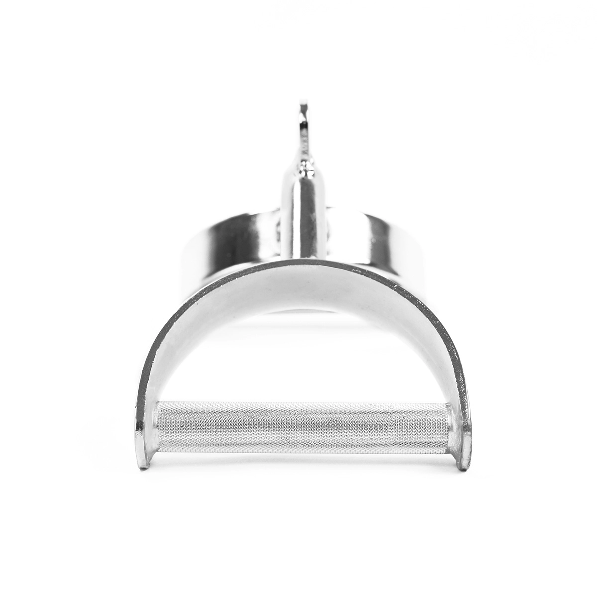 Les poignées de 140 mm de longueur et 25 mm de diamètre offrent une prise sûre et confortable, aidant à maintenir une technique correcte lors des mouvements d’aviron et des tirages à la taille. L’anneau central de 15 mm permet un raccordement rapide à un mousqueton ou à un câble sur la plupart des systèmes à poulies.