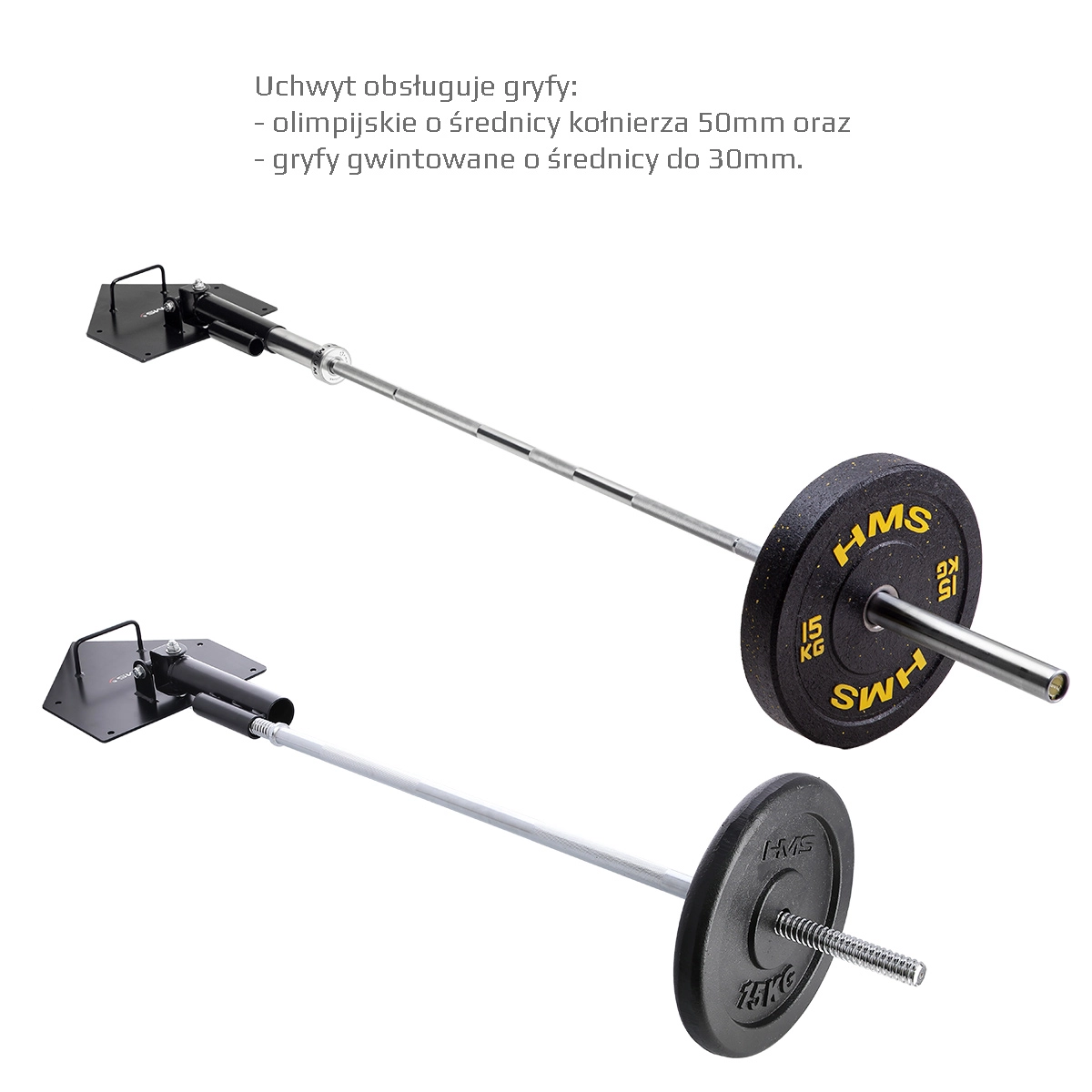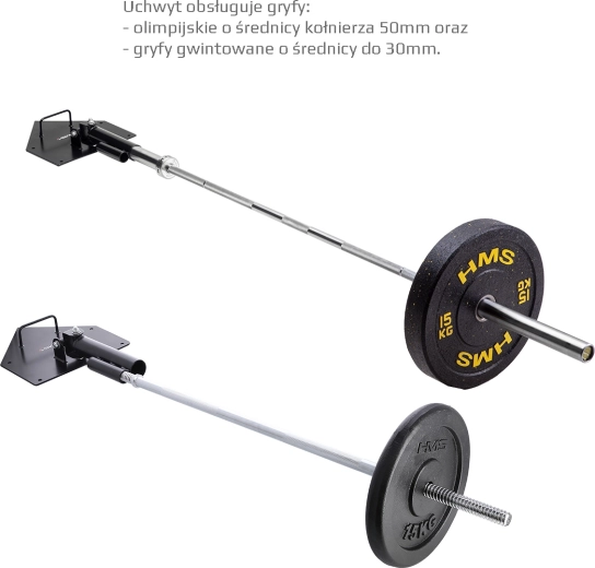 Le HMS UCG01 est un support articulé mural/au sol fiable pour barre olympique ou standard, qui élargit vos possibilités d’entraînement de force et de condition physique. Le double joint permet une conduite du mouvement fluide et sûre sur une « demi-sphère » – idéal pour les poussées, tirages, squats avec rotation, landmine press ou exercices d’anti-rotation. L’extrémité libre de la barre se charge facilement avec des disques selon les besoins.