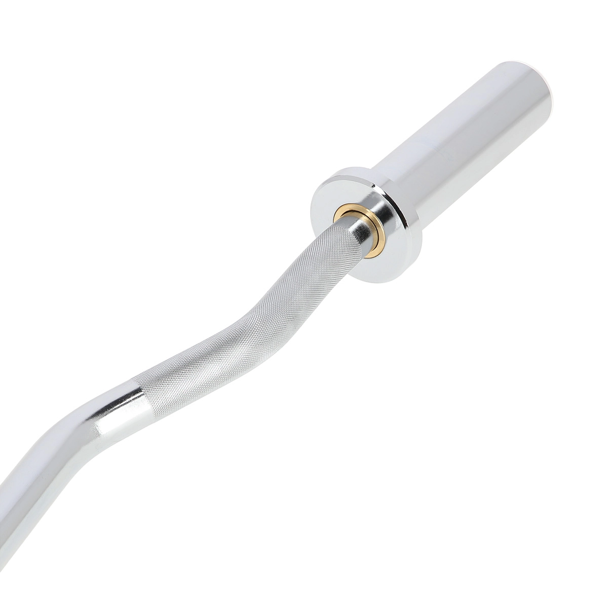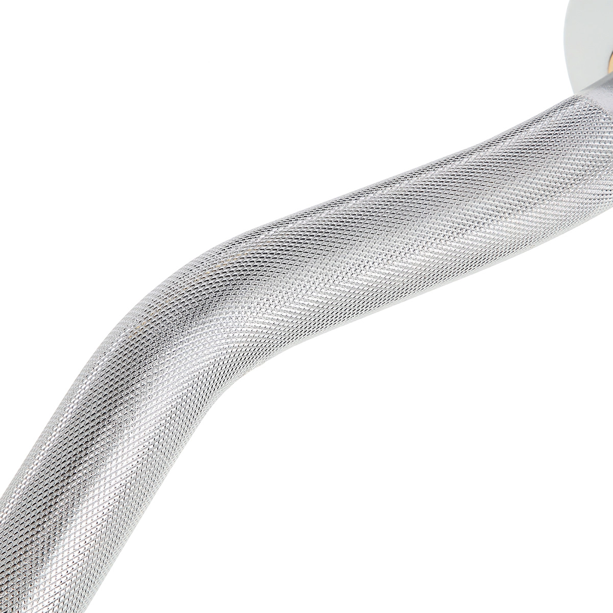 Cette barre olympique coudée est fabriquée en acier trempé spécial avec un chromage de qualité assurant une longue durée de vie et une protection fiable contre la corrosion. Sa forme coudée et ses poignées moletées offrent une prise sûre et confortable, réduisent la charge sur les poignets et améliorent la technique lors des exercices pour biceps et triceps.