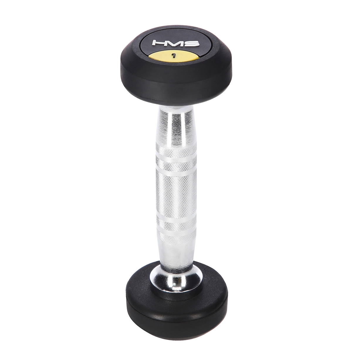 Pastille frontale contrastée avec le logo HMS et l’indication 1 kg pour une identification rapide sur le rack et pendant l’entraînement.