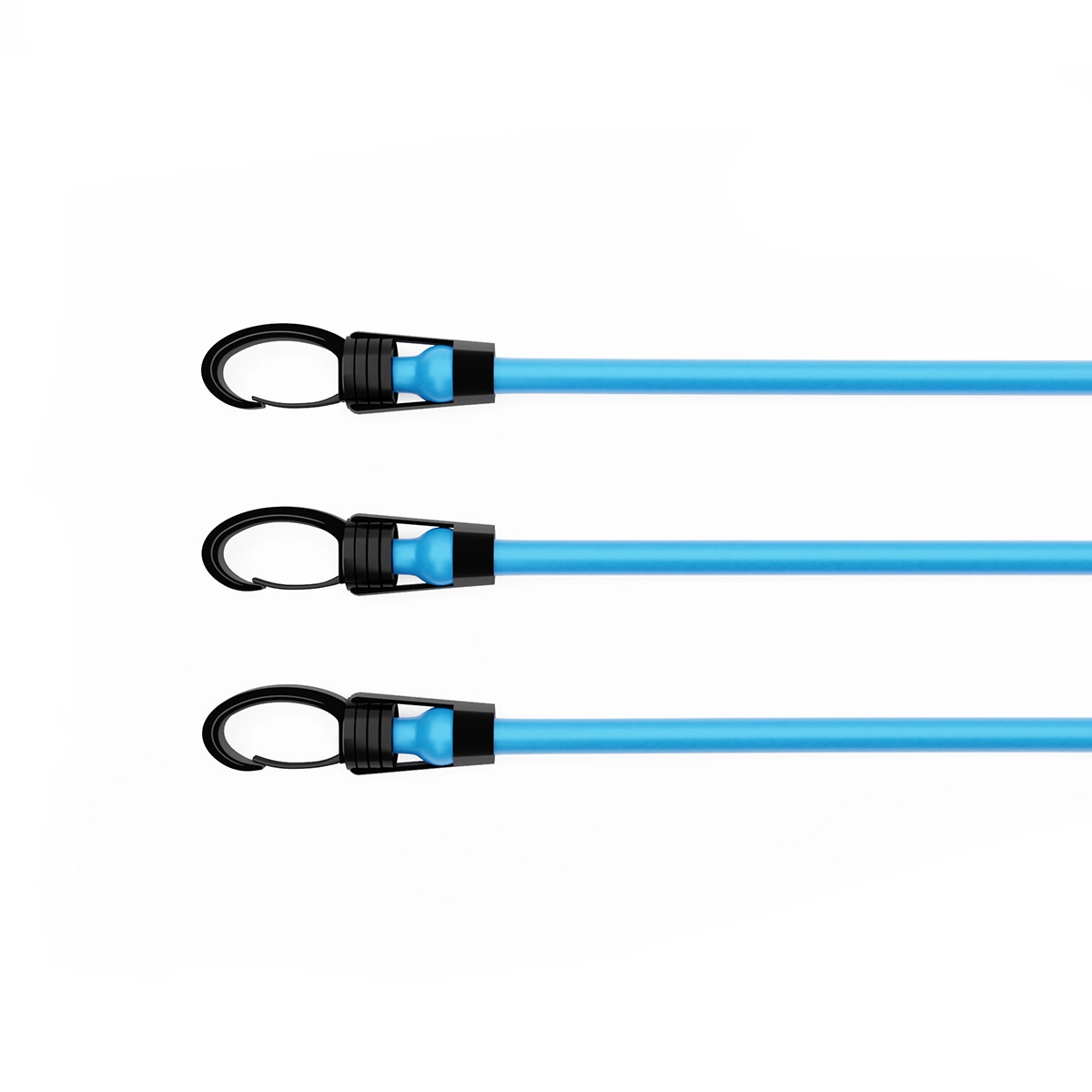 Des bandes résistantes avec différents niveaux de résistance permettent de faire évoluer précisément l’intensité – vous pouvez augmenter la résistance en combinant plusieurs bandes à la fois. Les poignées en mousse assurent une prise sûre et confortable, tandis que les sangles de cheville étendent la palette d’exercices pour cibler fessiers et cuisses. Les mousquetons permettent un changement rapide des accessoires et des transitions fluides entre les exercices.