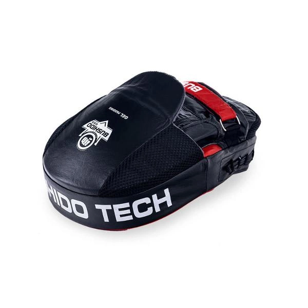 Pattes de frappe professionnelles DBX BUSHIDO pour un entraînement intensif de précision et de puissance. Elles offrent une insertion gel pour une excellente absorption des chocs, une forme anatomiquement incurvée pour des impacts sûrs et un maintien ferme avec sangle supplémentaire. Cuir bovin de haute qualité et ventilation ActivClima garantissent confort et longue durabilité.