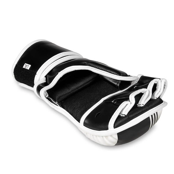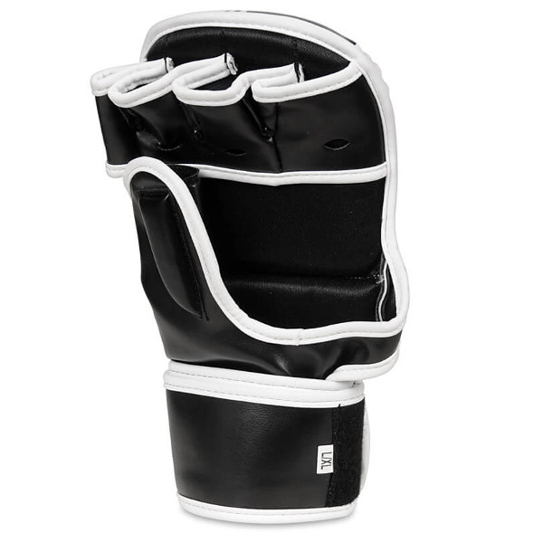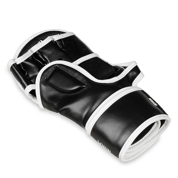 Pour un entraînement plus sûr, le gant est équipé d’un recouvrement protecteur du dos du pouce et d’une longue et large fermeture velcro pour une fixation stable du poignet. La doublure intérieure lisse facilite l’enfilage et le retrait rapides pendant les rounds intenses. La forme ergonomique favorise la flexion naturelle des doigts et le confort en grappling comme en striking.