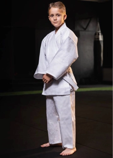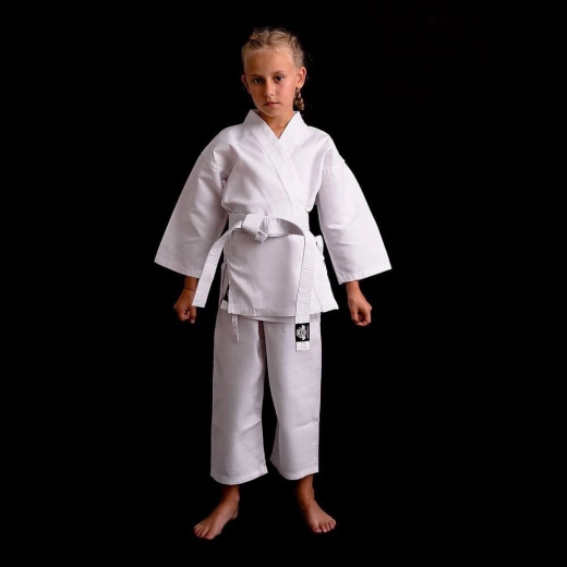 La coupe pratique et le double maintien du pantalon (élastique + cordon) évitent le glissement et permettent aux enfants de se concentrer uniquement sur la technique. Le set comprend également une ceinture blanche de 210 cm, pour commencer l’entraînement sans attendre.