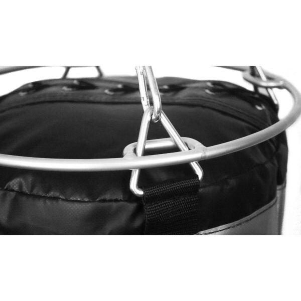 L’compactage progressif du rembourrage crée une zone creuse dans la partie supérieure du sac, qui se déforme sous le poids et avec des chaînes courtes. L’anneau d’écartement DBX BUSHIDO R40 répartit la pression de manière uniforme, maintient une silhouette stable du sac et maximise la surface d’entraînement utile. Grâce à l’acier galvanisé résistant, il convient à un usage prolongé et exigeant.