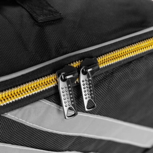 - 3 compartiments zippés, 2 poches zippées, 1 poche isotherme zippée, 3 compartiments en filet, 1 compartiment pour documents/ordinateur portable 16", 1 poche intérieure zippée