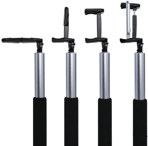 Repliée, elle ne mesure que 24 cm et se glisse aisément dans un sac. Une fois déployée, elle atteint 90 cm, offrant un cadre plus large, même pour de grands groupes. Le support pivotant avec inclinaison et rotation jusqu’à 270° aide à régler précisément l’angle pour les photos et vidéos.