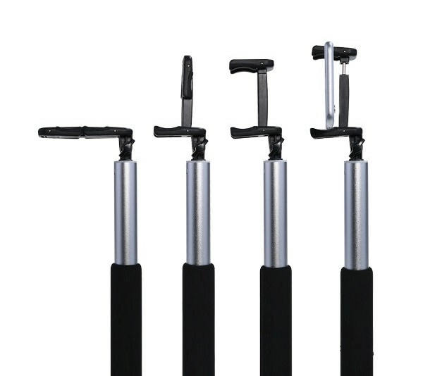 Structure télescopique métallique en alliage d’aluminium assurant stabilité et plus grande portée pour un champ plus large et une meilleure composition des selfies et photos de groupe.