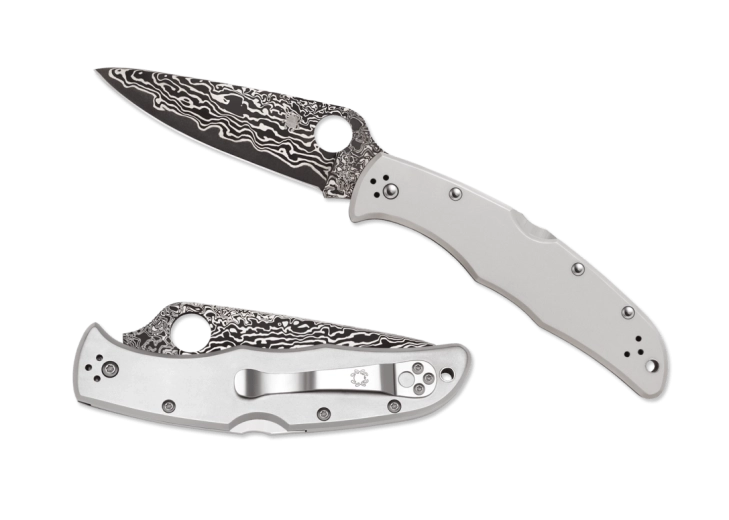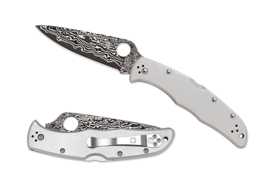 Couteau de poche haut de gamme Spyderco Endura 4 en version exclusive avec lame en damas et manche en titane, offrant un excellent équilibre entre élégance et performance pour le port quotidien (EDC) ainsi que pour la collection. Tranchant lisse de type Drop Point avec un cœur en VG-10, verrouillage fiable Backlock et clip de poche garantissant une manipulation sûre et confortable.