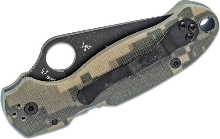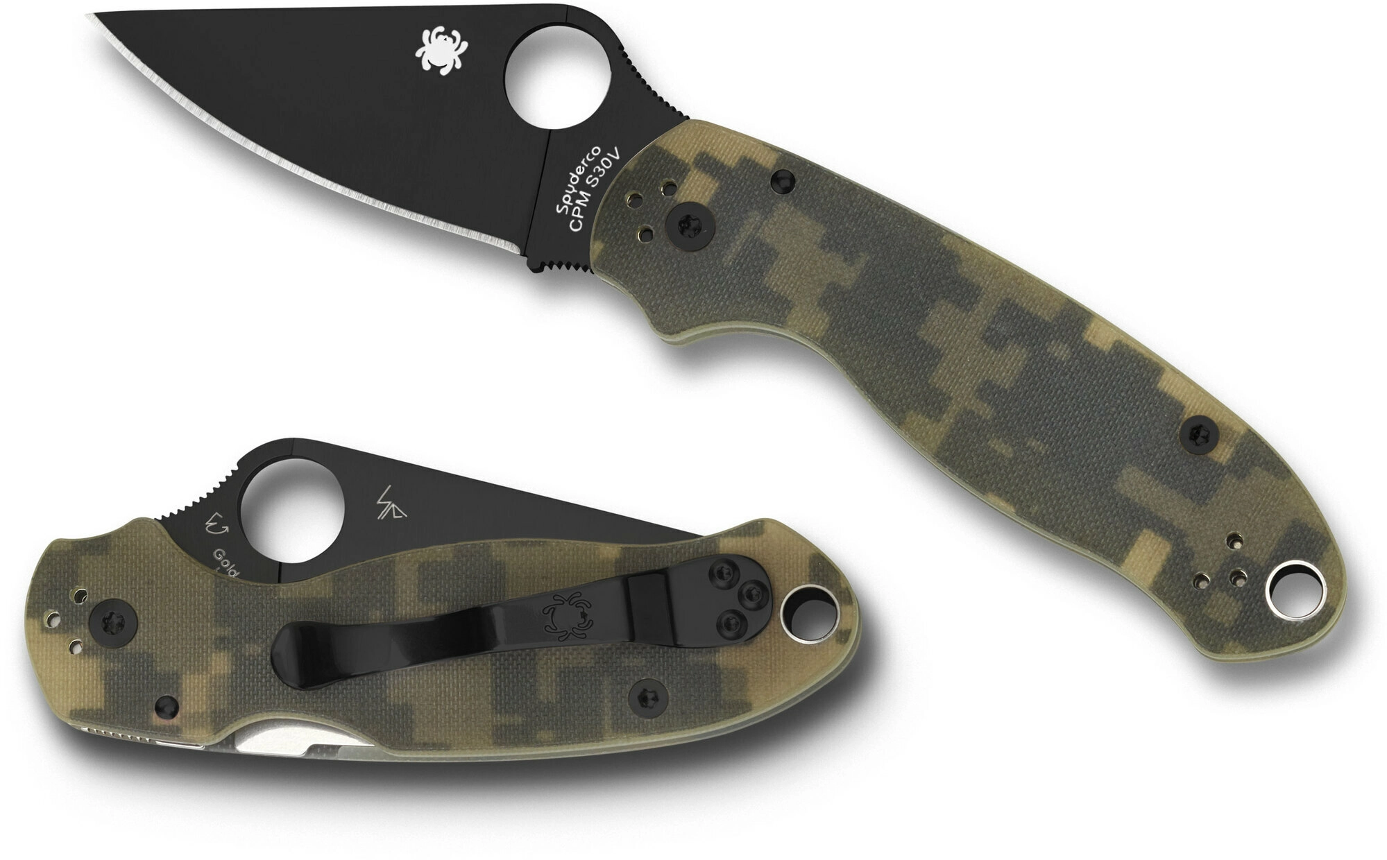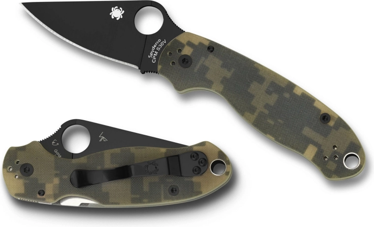 Couteau de poche tactique Spyderco Para 3 Camo, lame noire, manche G-10