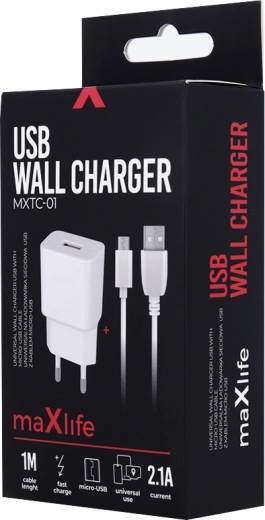 Ce chargeur universel MAXLIFE est idéal pour une utilisation quotidienne à la maison comme en déplacement. Il offre un courant de 2,1 A pour une recharge rapide et une sortie USB‑A standard, vous permettant de connecter facilement une large gamme d’appareils – des smartphones aux petits accessoires.