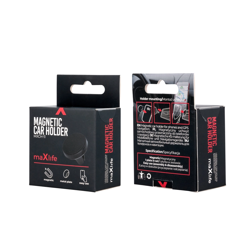 Support de voiture pratique et fiable MAXLIFE avec fixation magnétique, garantissant que votre téléphone reste toujours en sécurité et bien visible. Aimant puissant, utilisation à une main et installation facile sur la grille d’aération font de ce support un compagnon idéal pour les trajets quotidiens.
