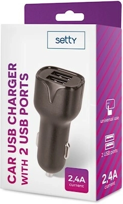 Le chargeur voiture USB SETTY compact, avec une puissance allant jusqu’à 2,4 A, propose 2 ports USB pour charger simultanément deux appareils. Il fonctionne sur des prises 12–24 V, idéal donc pour les voitures particulières comme pour les poids lourds. Recharge fiable et rapide pour smartphones, GPS, MP3 et autres appareils électroniques, dans un design élégant noir.