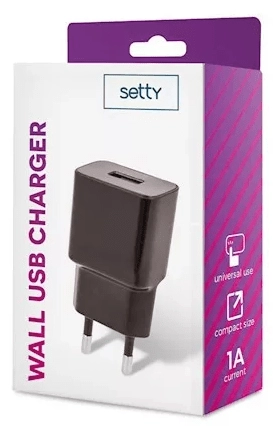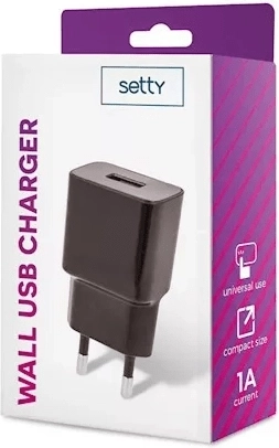 Le chargeur mural pratique SETTY offre une sortie stable de 5 V / 1 A, respectueuse de la batterie et adaptée à la plupart des petits appareils. Son unique port USB permet de brancher facilement des câbles standards pour une recharge sans complications inutiles.