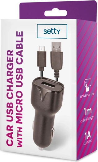 Setty chargeur auto USB 1 A avec câble microUSB 1 m, noir