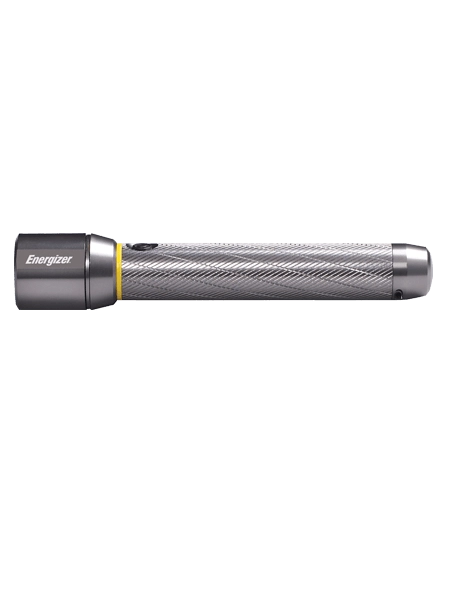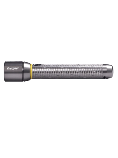 Lampe de poche compacte Energizer Vision Metal HD avec technologie MAXVIZ offrant une haute résolution lumineuse, jusqu’à 400 lm, une portée de 115 m et trois modes dont un flash d’urgence. Résistante aux chutes de 1 m et aux éclaboussures d’eau IPX4, alimentation 2× AA (incluses).