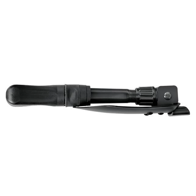 Pliée, elle ne mesure que 23 cm, ce qui lui permet de se glisser facilement dans un sac à dos ou une boîte à gants. Le marteau intégré à l’extrémité de la poignée est pratique pour monter le camp – notamment pour enfoncer les piquets de tente. L’étui en nylon fourni protège l’outil et facilite le transport.