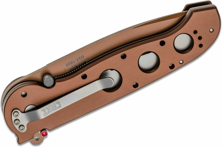 Le CRKT M16-14D Desert Tanto est un partenaire EDC et tactique fiable pour les conditions exigeantes. La lame tanto en acier inoxydable AUS-8 avec tranchant partiellement cranté Triple Point vient à bout des cordages, sangles et matériaux plus durs. Le revêtement au nitrure de titane, en teinte cuivre, augmente la résistance à l’usure et à la corrosion, tout en s’accordant avec l’esthétique « désert » du couteau.