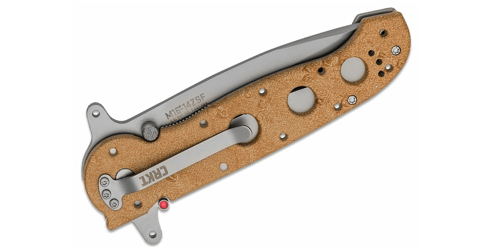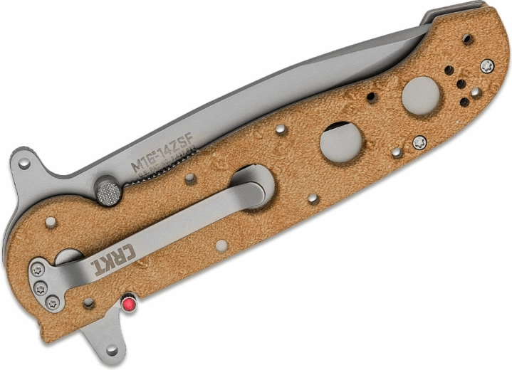Le modèle CRKT M16-14ZSF fait partie des couteaux éprouvés de la série M16. Il combine résistance et fonctionnalité sur le terrain : la lame Tanto en acier inoxydable AUS-8 avec finition mate réduit les reflets, et le tranchant partiellement cranté vient à bout des cordages, sangles et matériaux d’emballage. Le flipper permet une ouverture rapide et intuitive d’une seule main.