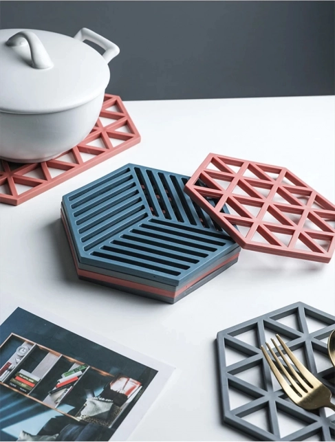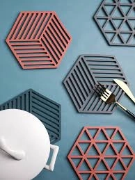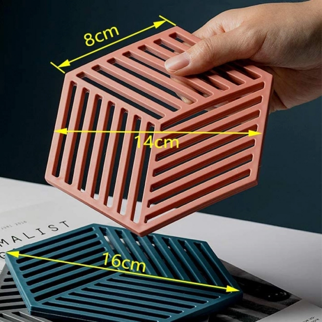 Ce dessous de plat en silicone résistant est conçu pour un usage quotidien : il supporte en toute sécurité les casseroles, poêles et plats chauds tout en protégeant les surfaces des dégâts liés à la chaleur et aux rayures. Son design minimaliste hexagonal avec découpes diagonales apporte une touche moderne à votre cuisine.