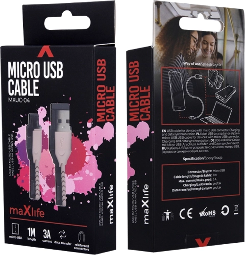 Vous cherchez un câble pratique et résistant pour vos appareils microUSB ? Ce câble Maxlife rose offre un transfert de données rapide et une charge efficace avec prise en charge d’un courant jusqu’à 3 A. Grâce à sa gaine en nylon, le câble est résistant aux pliures et à l’emmêlement, tandis que les connecteurs renforcés le protègent contre la casse.