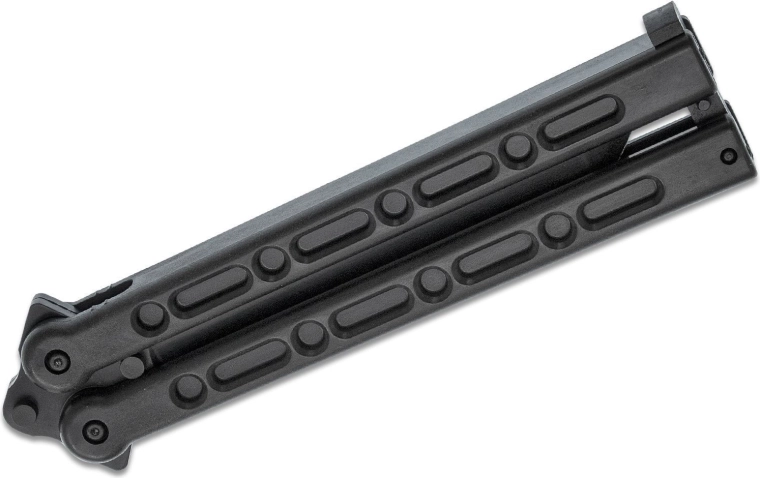 Le FGX Balisong de la marque COLD STEEL est un couteau papillon fonctionnel entièrement fabriqué en polymère avancé Griv-Ex. Grâce à cela, il est exceptionnellement léger, ne rouille pas et supporte un usage plus rude. Le profil Tanto offre une pointe solide et un tranchant lisse pour des coupes précises, tandis que la finition entièrement noire reste discrète et stylée.