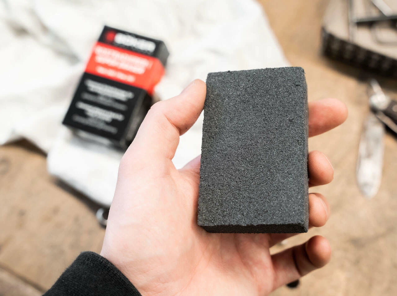 Parfaite pour l’entretien quotidien des couteaux de cuisine et d’extérieur, des outils et des pièces métalliques. Utilisation simple : il suffit de frotter délicatement la zone concernée et d’augmenter progressivement la pression selon les besoins. Pour un résultat optimal, nettoyez sur une surface sèche ou légèrement humidifiée et travaillez par passes régulières dans le sens du ponçage.