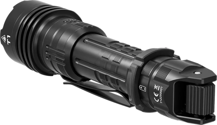Cette lampe tactique compacte utilise la LED LUMINUS SST40 pour délivrer une puissance lumineuse intense de 2000 lumens et un faisceau précisément focalisé avec une portée allant jusqu’à 498 mètres. Un dissipateur soigné et une construction robuste assurent des performances stables même dans des conditions exigeantes.