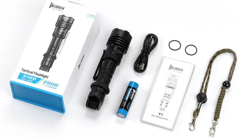 - lampe T1, câble USB‑C, dragonne, 18650 3100 mAh, 2× joint torique d’étanchéité
