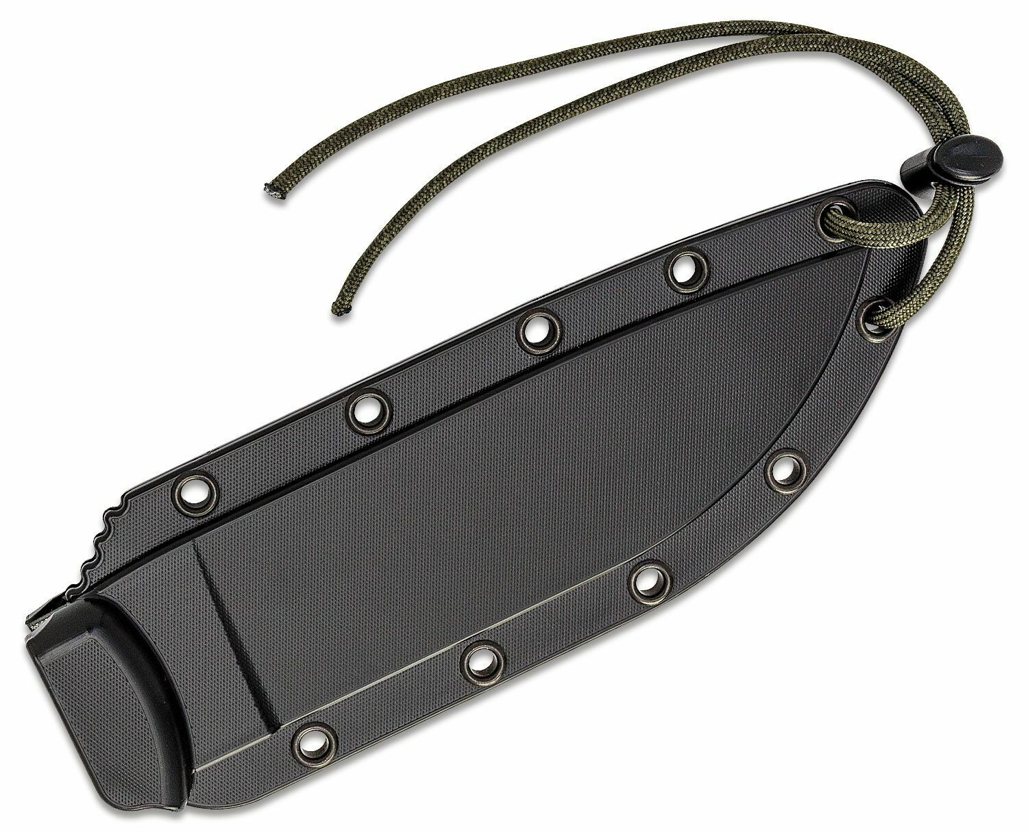 L’étui moulé avec œillets pour multiples options de fixation maintient fermement le couteau en place et protège la lame lors du transport sur le terrain.