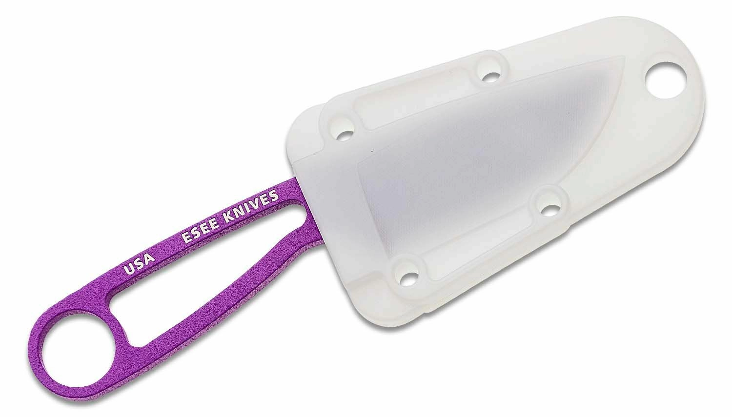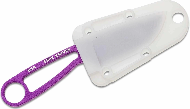 Couteau de cou compact et léger ESEE Izula dans une couleur violette éclatante, idéal pour le port quotidien. Construction monobloc en acier au carbone 1095 offrant une grande robustesse et une excellente tenue de coupe. Grâce aux ouvertures du manche, vous pouvez facilement le ficeler avec du paracorde ou le suspendre. Livré avec un étui en plastique blanc avec clip pour un port sécurisé au cou, à la ceinture ou sur le sac à dos.