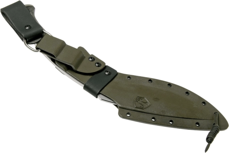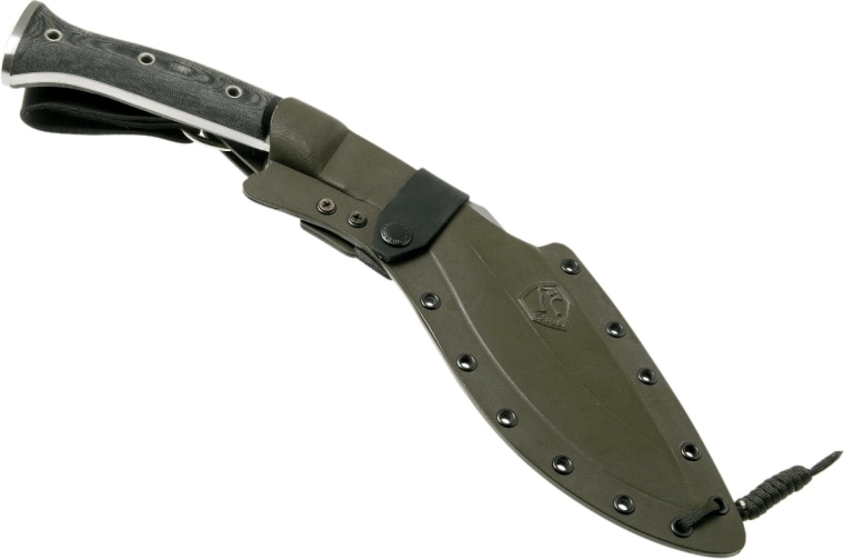Cette machette au profil kukri iconique s’inspire de l’outil éprouvé des Gurkhas népalais. Grâce à sa courbure marquée et à son avant plus lourd, elle excelle pour couper rapidement et efficacement le bois, l’ébranchage ainsi que pour des tâches outdoor et tactiques exigeantes. L’acier carbone 1075 offre une grande ténacité et des performances fiables sur le terrain.