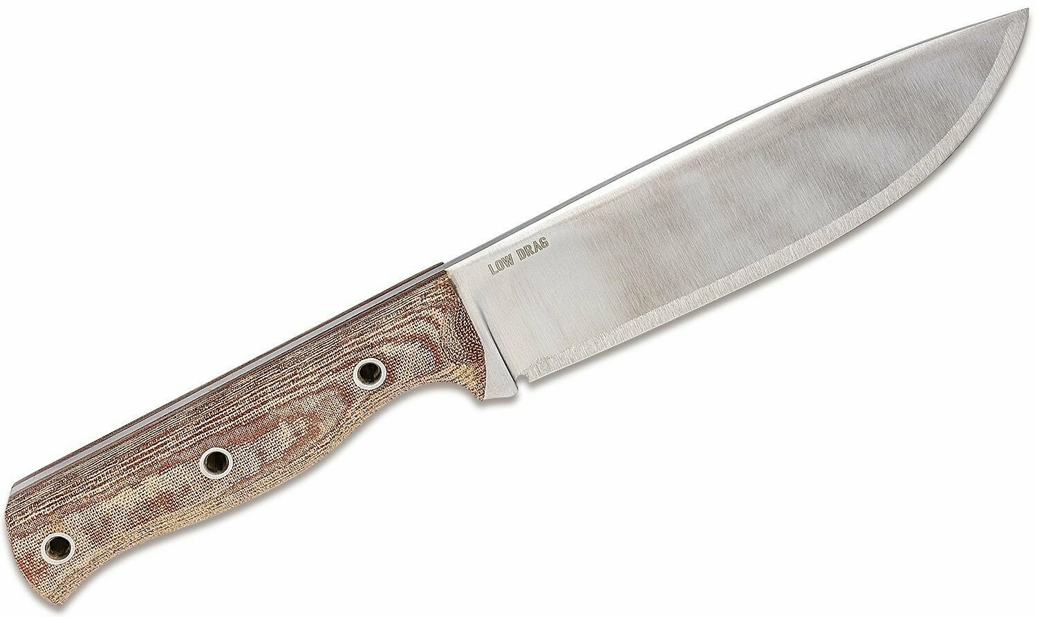 La poignée en Micarta brune, fortement texturée et ergonomique, tient fermement en main à sec comme mouillée. L’acier 1075 est un acier carbone tenace – pour une longue durée de vie, il suffit après usage de nettoyer la lame et de l’huiler légèrement.