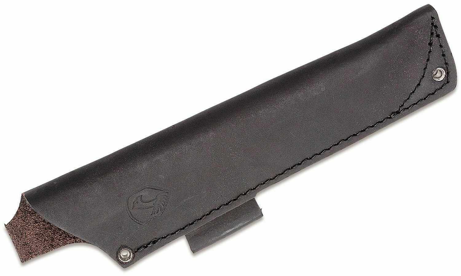 Étui en cuir robuste avec surpiqûres protégeant la lame et permettant une suspension confortable à la ceinture pour un accès rapide sur le terrain.