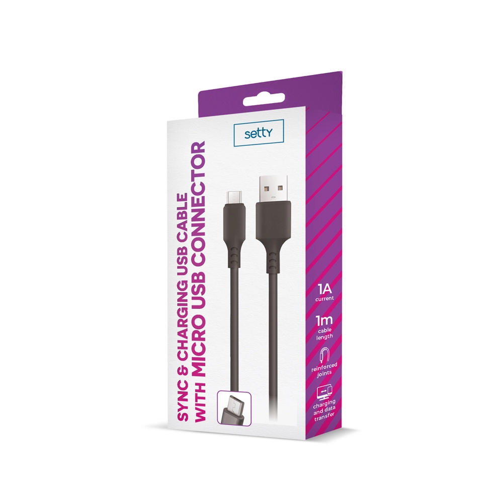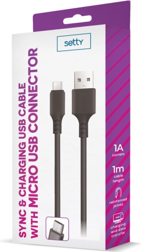 Le câble Setty USB – microUSB est un accessoire universel pour les appareils dotés d’un connecteur micro‑USB. Il assure une connexion stable à un ordinateur portable, un PC ou un chargeur, garantissant une charge sûre et efficace avec un courant allant jusqu’à 1 A.