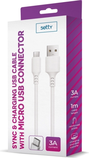 Le câble pratique Setty USB–microUSB est idéal pour une utilisation quotidienne à la maison, au bureau et en déplacement. Il offre une connexion stable entre le téléphone, la powerbank, le chargeur ou l’ordinateur et, grâce au courant maximal de 3 A, prend en charge une charge plus rapide des appareils compatibles.