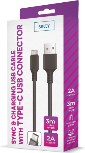 Profitez d’une charge confortable et d’une synchronisation stable avec le câble Setty USB–USB‑C. Grâce à sa longueur de 3 mètres, vous atteignez facilement la prise ou l’ordinateur portable là où vous en avez besoin, sans compromis sur la vitesse ni la sécurité. Idéal pour une utilisation quotidienne à la maison, au bureau et en déplacement.