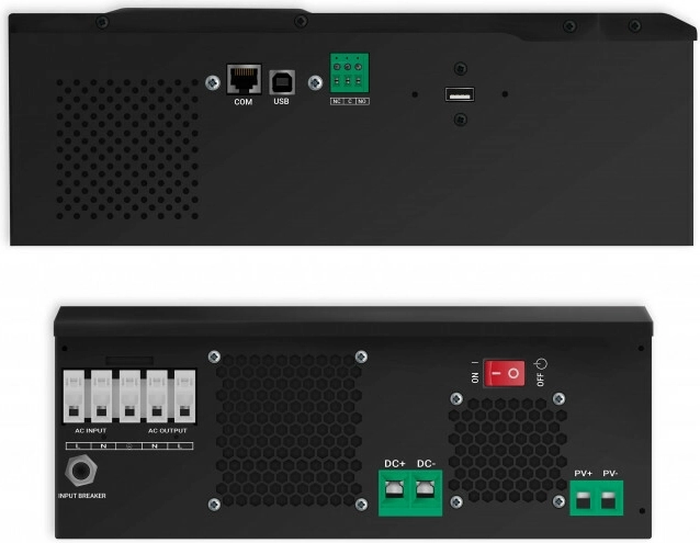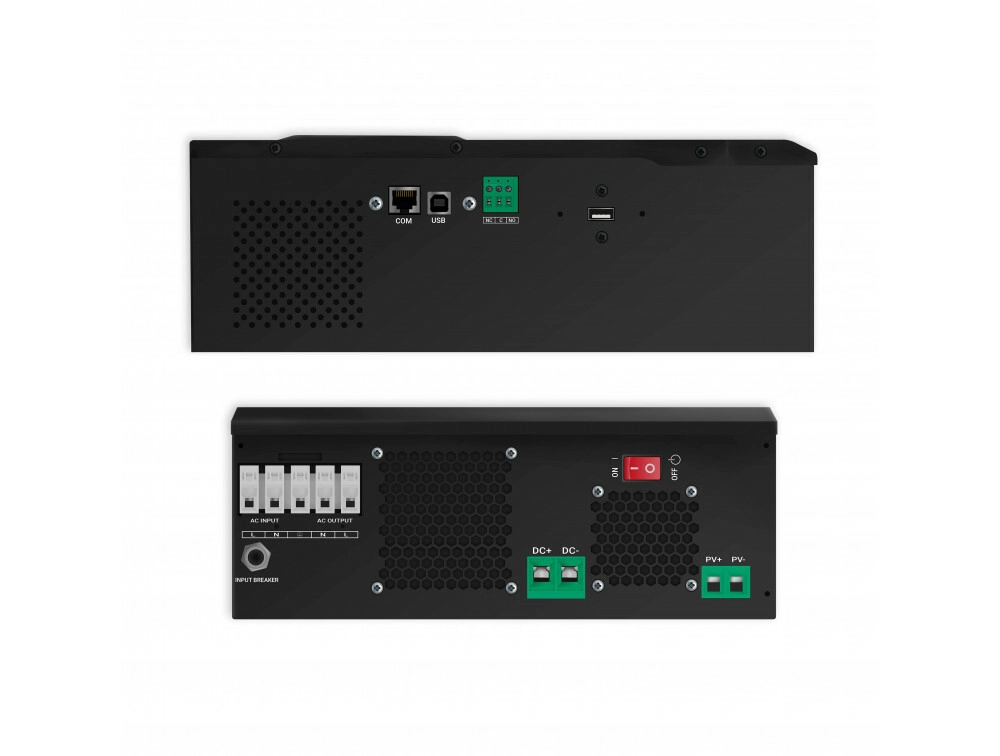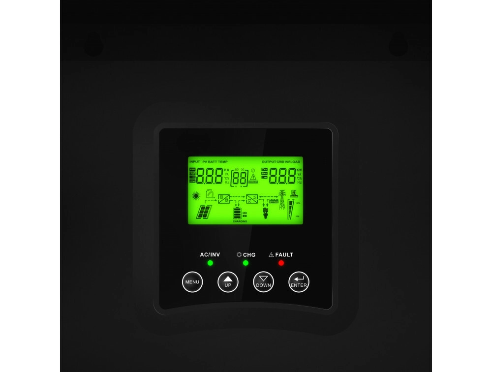 • 3‑en‑1 : onduleur, régulateur MPPT et chargeur de batterie en un seul appareil.
